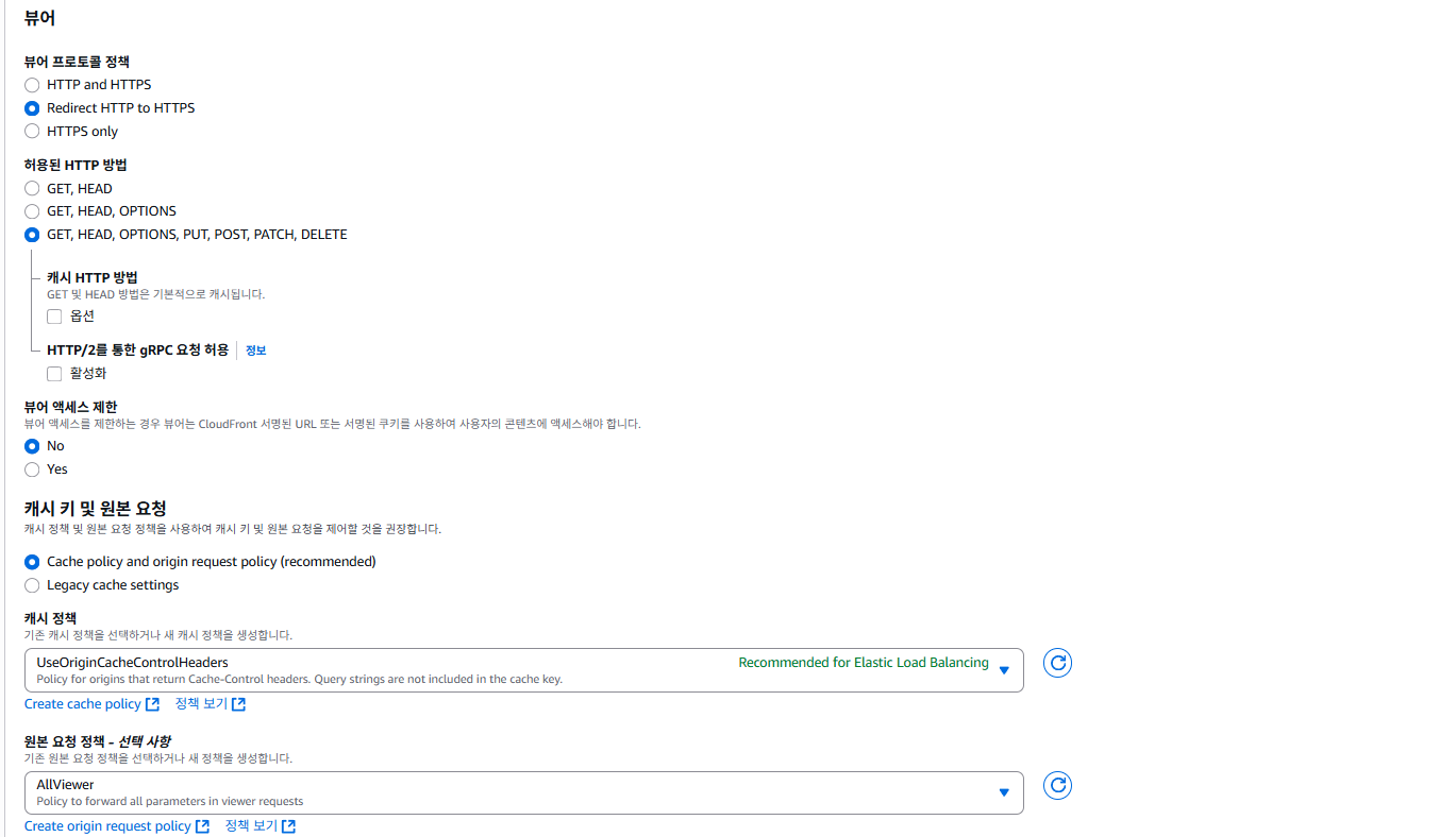 - CloudFront → ALB HTTPS: Origin Protocol을 HTTPS로 설정
