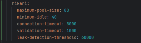 성능을 더 끌어올리고 싶어서 HikariCP 설정을 건드려봤습니다.