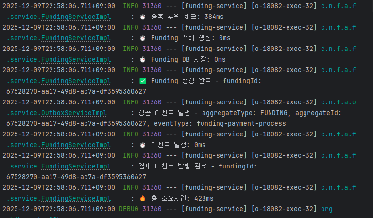 Funding funding = fundingService.completeFunding(event.fundingId(), event.paymentId());