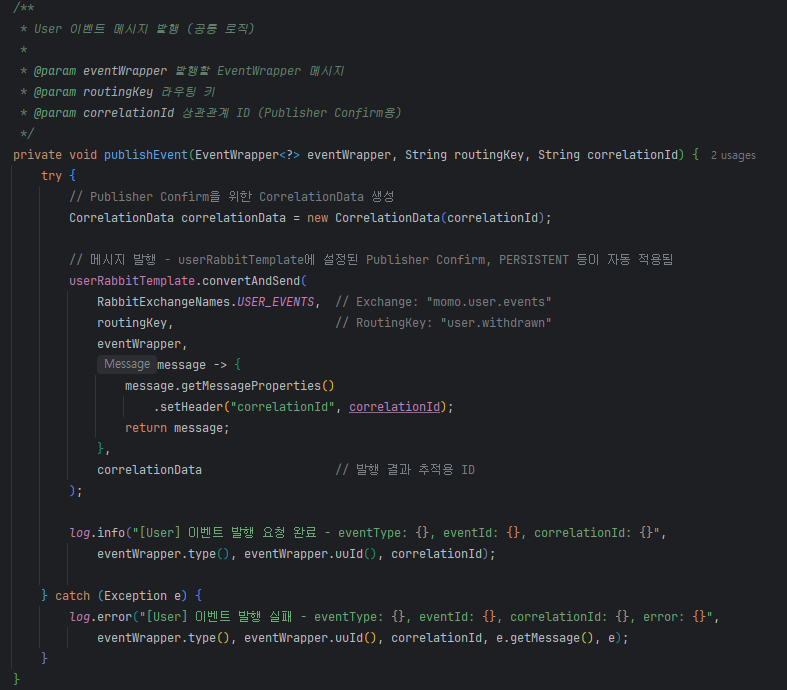 문제 해결과 함께 분산 시스템에서의 이벤트 추적을 위해 correlationId도 구현했습니다.